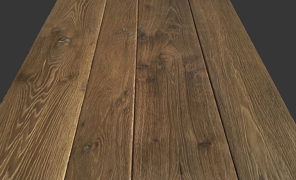 Antiqued French Oak Flooring -  The Country House Collection is a weathered, highly brushed and antiqued French or European oak floor with an undulation surface that makes for an historic masterpiece.  The color is achieved through oxidation working within the tannin of the oak planks.