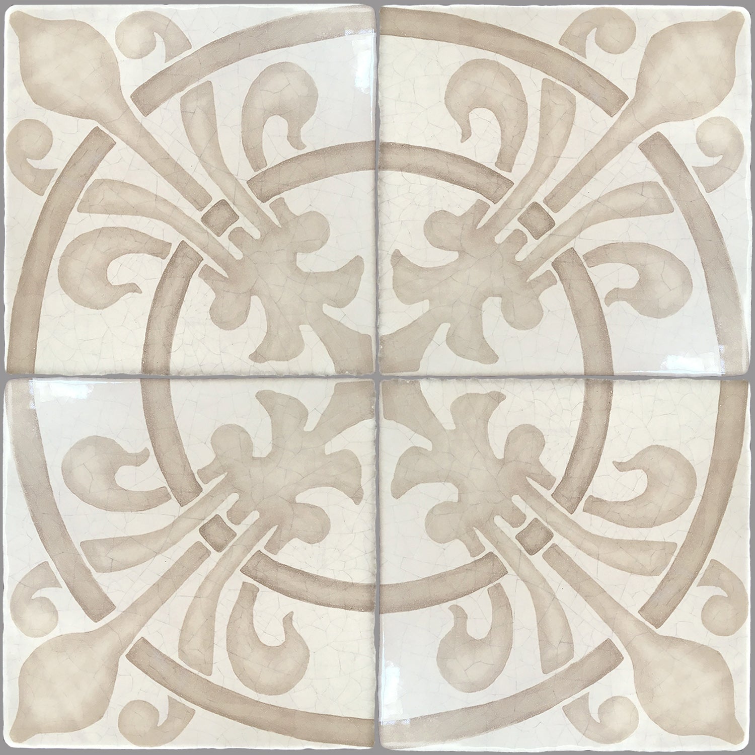 Hand-painted French encaustic decorative glazed ceramic wall tiles with a distinctive hand-crackled finish, inspired by 14th-century French motifs. Drawn from historic encaustic patterns—including the fleur-de-lys and the natural world—each tile is developed from carefully studied sources and translated through the artist’s hand. Kiln-fired and delicately etched, the surface reveals a soft, crackled patina reminiscent of antique ceramic, with subtle irregularities that preserve the depth and authenticity of early European craftsmanship.
