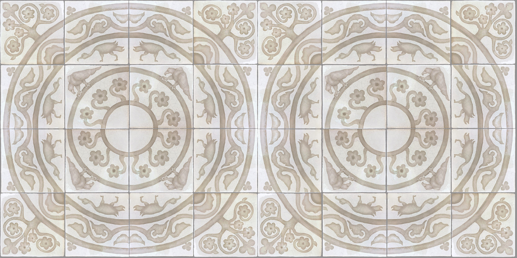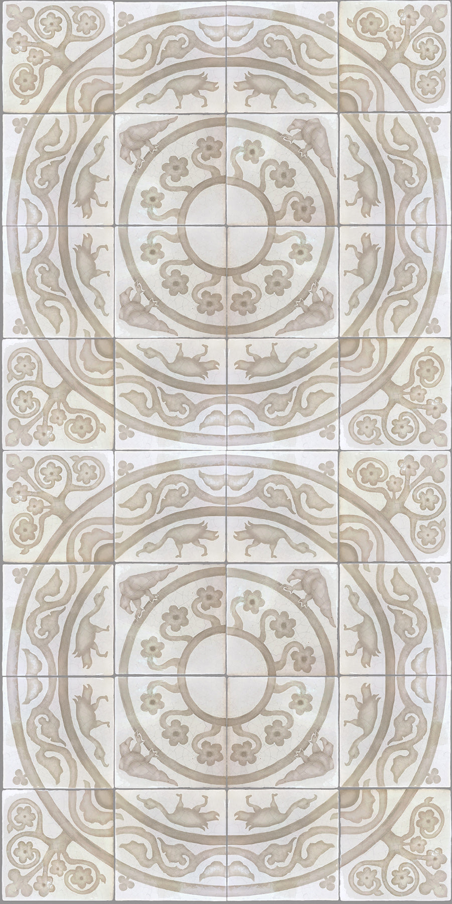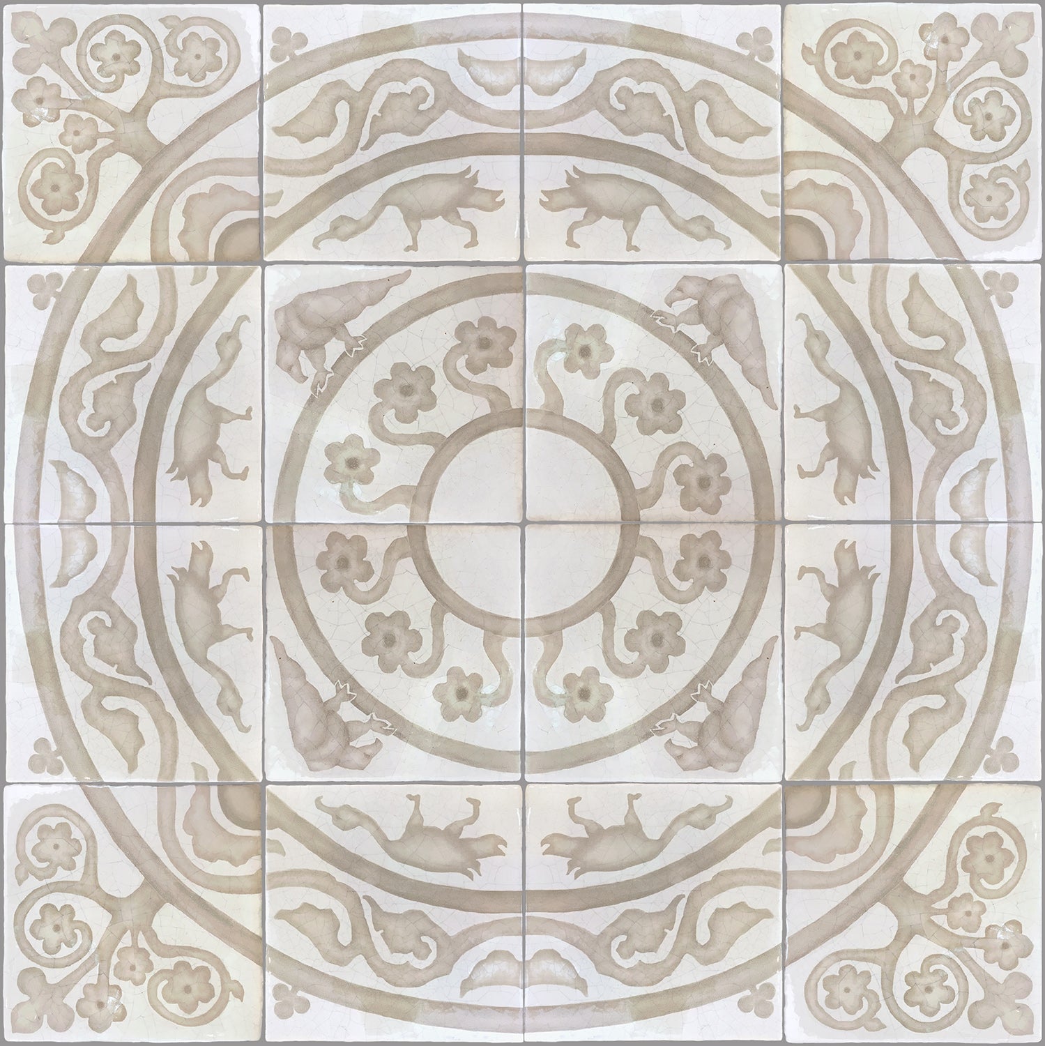 Hand-painted French encaustic decorative glazed ceramic wall tiles with a distinctive hand-crackled finish, inspired by 14th-century French motifs. Drawn from historic encaustic patterns—including the fleur-de-lys and the natural world—each tile is developed from carefully studied sources and translated through the artist’s hand. Kiln-fired and delicately etched, the surface reveals a soft, crackled patina reminiscent of antique ceramic, with subtle irregularities that preserve the depth and authenticity of early European craftsmanship.